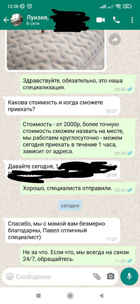 Я лично отвечаю за работу свою и каждого мастера, со мной работает мой сын и только проверенные люди.